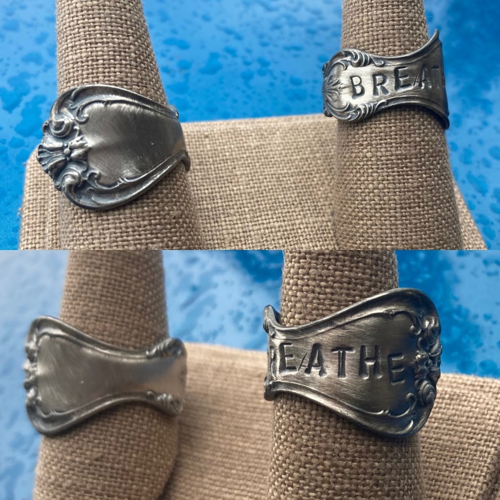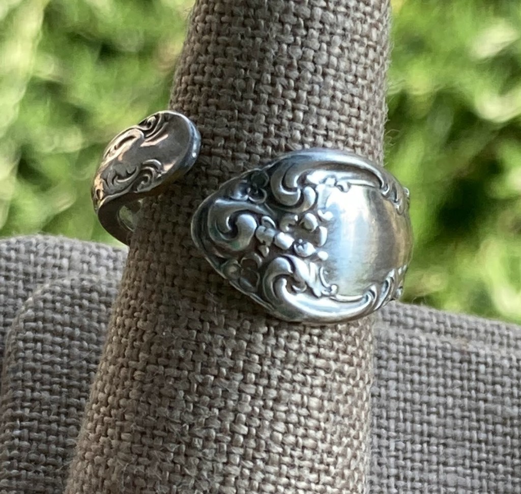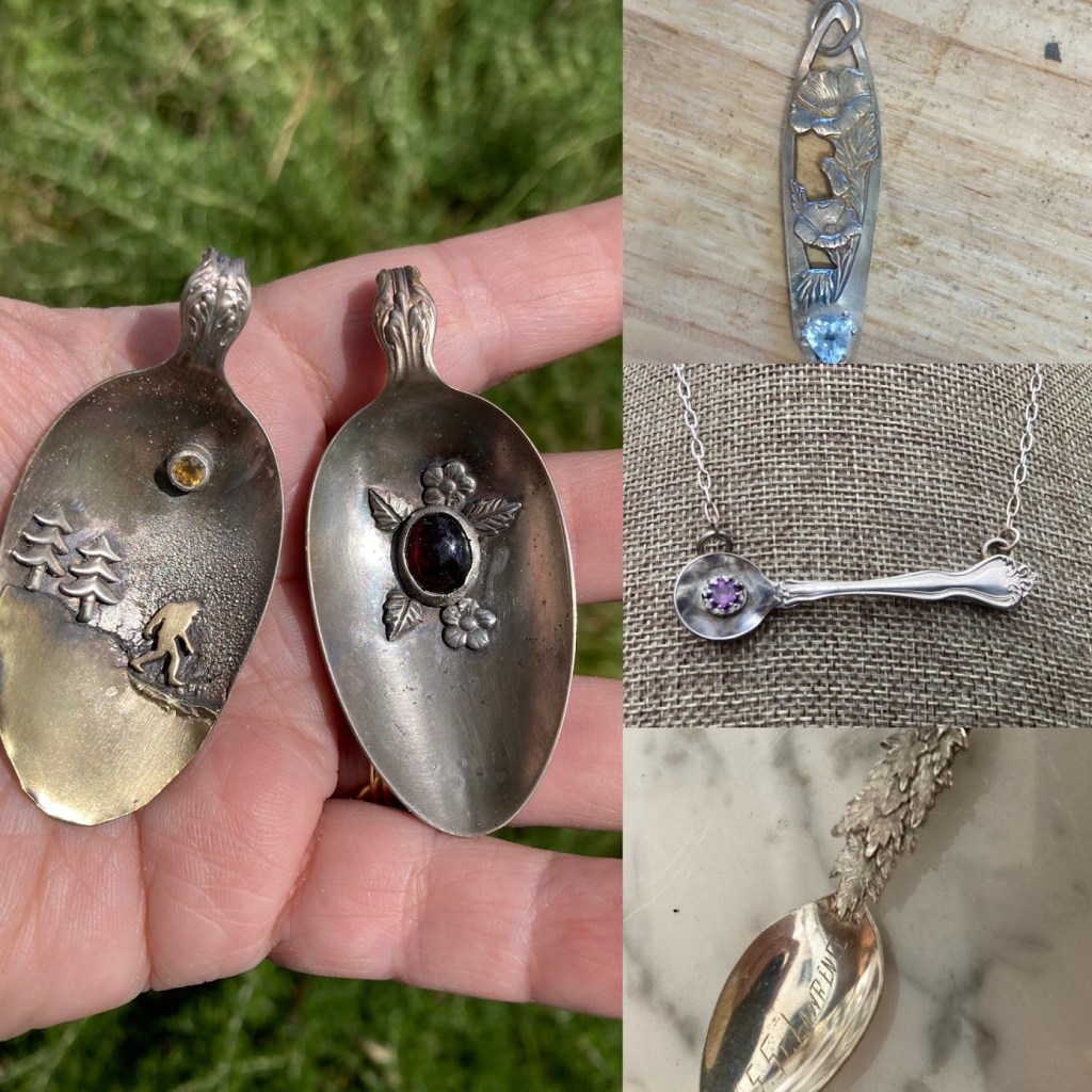 To me, sterling silver spoons represent the conspicuous consumption of an earlier age (remember that phrase, “born with a silver spoon in his mouth?”). From a modern perspective, I’m reclaiming these elitist symbols and recycling them into individual pieces of art that can find new life, and be worn and enjoyed by common people. And art they are… some are stunning! It’s my pleasure to join them with gems, to fire and twist them into wearable history.