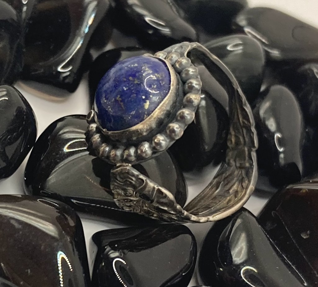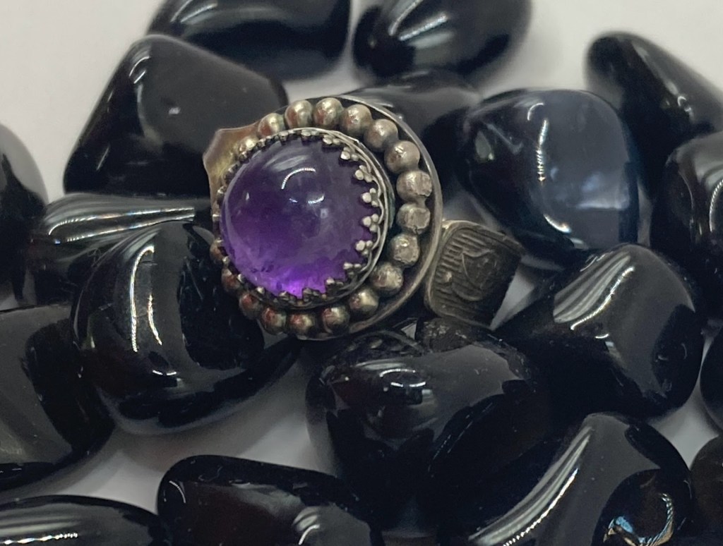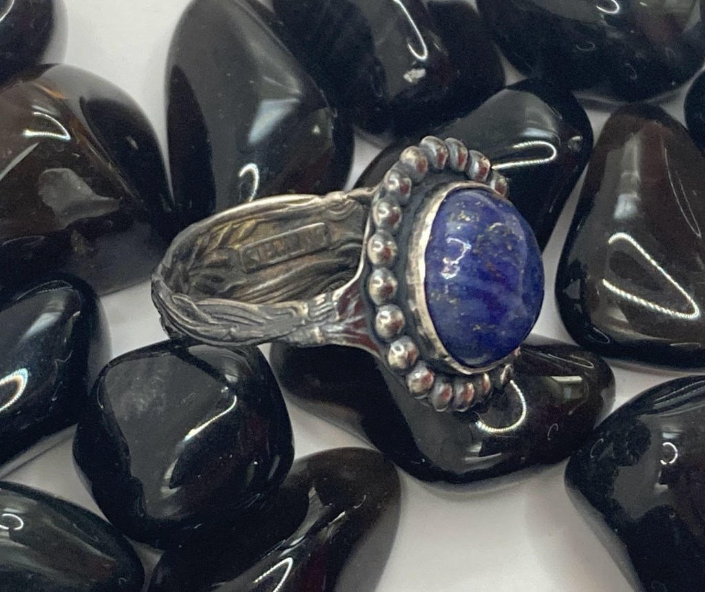 Lapis daffodil ring $120. Amethyst vine ring $120. Breathe ring $60.