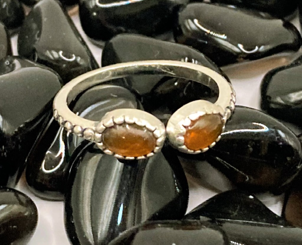 Some beach pebbles just scream to be mounted “as is.” This bold, rustic ring is available ($50). The agate below is translucent, and catches the light beautifully when worn. On the right is a ring made with Oregon opals.