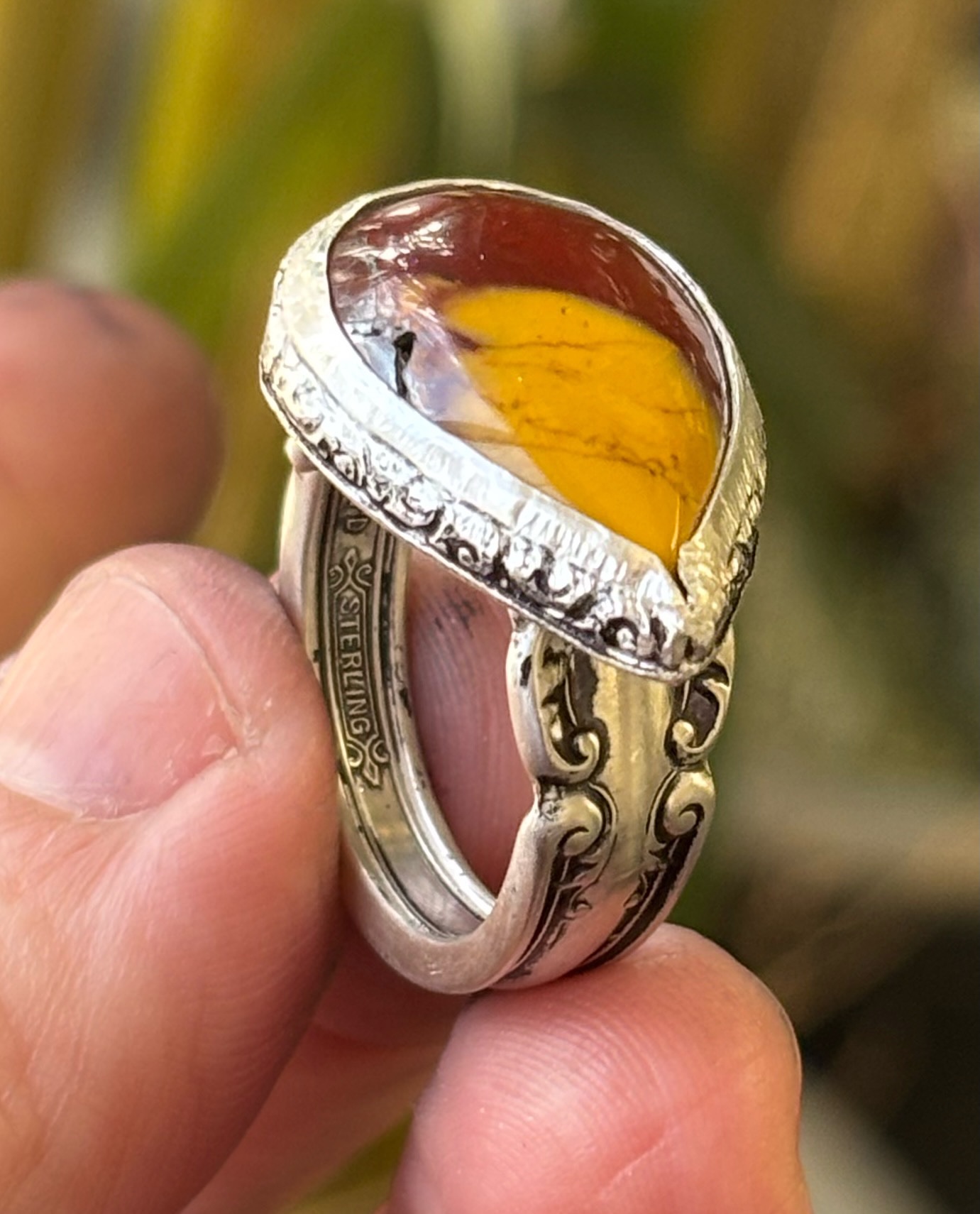 The shank was made from a sterling silver butter spreader handle made by Gorham. The pattern is called buttercup and dates from 1899!