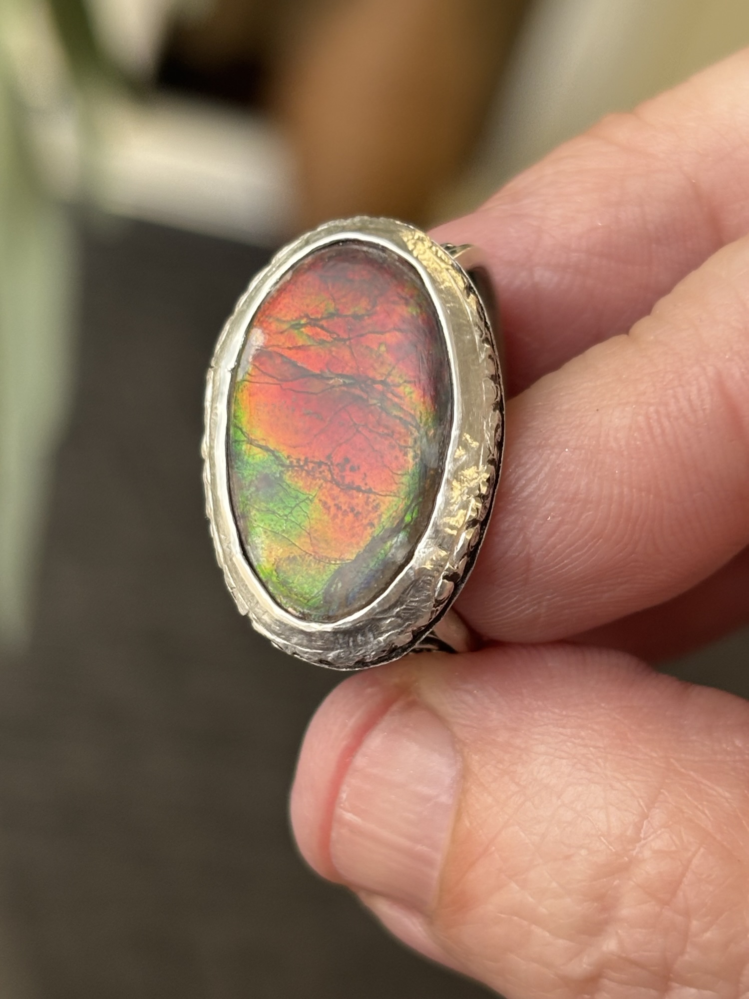 Ammonite fossils are shells from the Cretaceous* period. When they become opalized, it’s called ammolite. Below: a stunning ammolite specimen (not mine or my pic) 143.1 to 66 million years ago